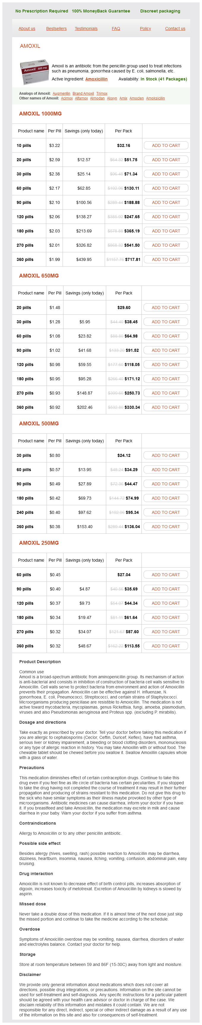 Amoxil packs: 10 pills, 20 pills, 30 pills, 60 pills, 90 pills, 120 pills, 180 pills, 270 pills, 360 pills, 240 pills