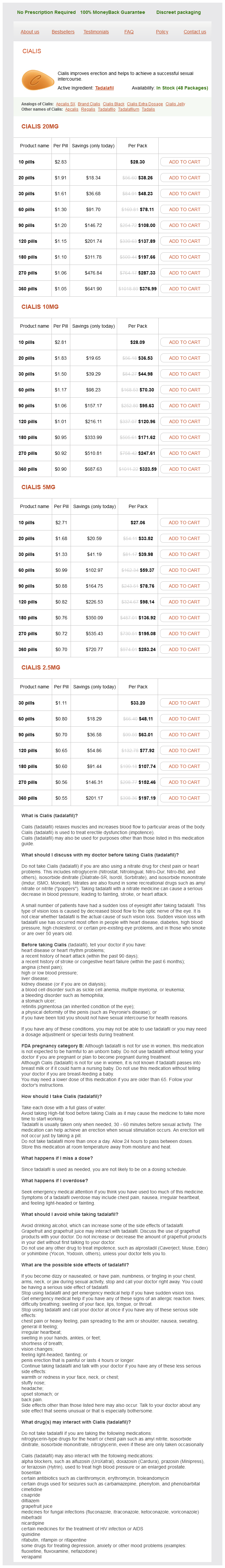 Cialis packs: 10 pills, 20 pills, 30 pills, 60 pills, 90 pills, 120 pills, 180 pills, 270 pills, 360 pills