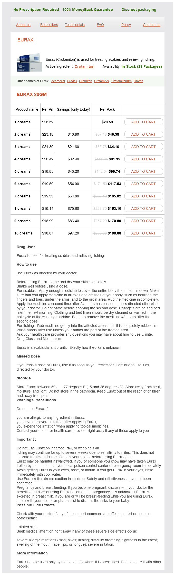 Eurax dosages: 20 gm