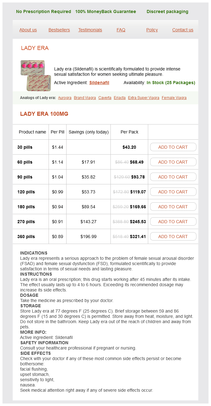 Lady era packs: 30 pills, 60 pills, 90 pills, 120 pills, 180 pills, 270 pills, 360 pills