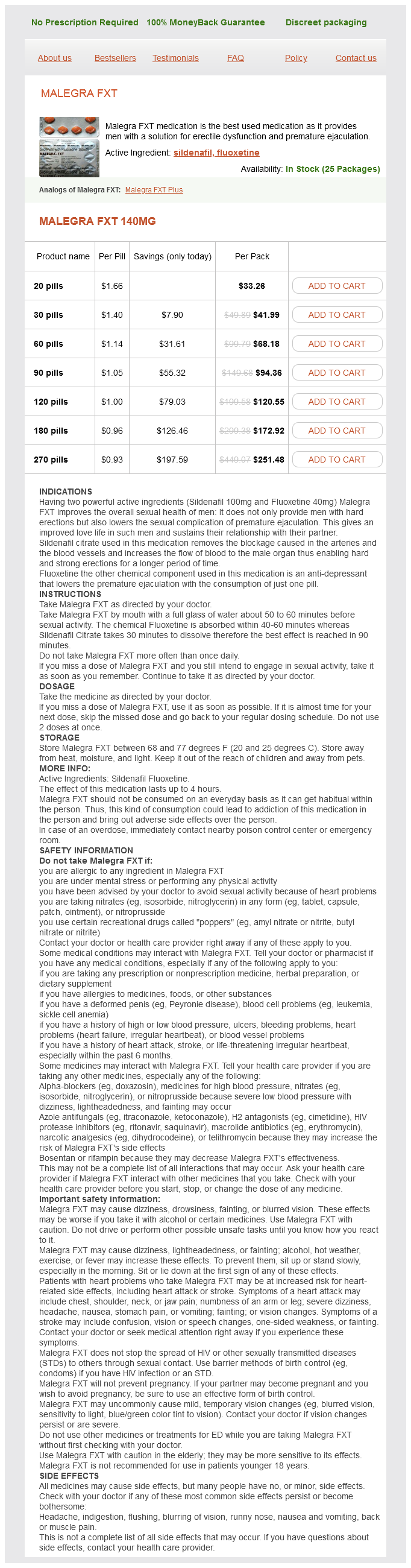 Malegra FXT packs: 20 pills, 30 pills, 60 pills, 90 pills, 120 pills, 180 pills, 270 pills