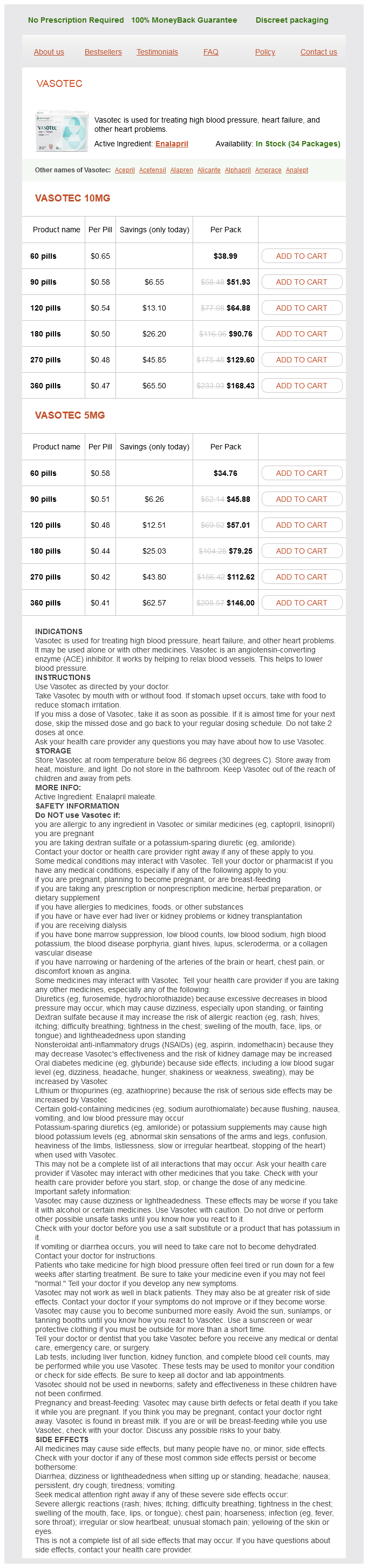 Vasotec packs: 60 pills, 90 pills, 120 pills, 180 pills, 270 pills, 360 pills