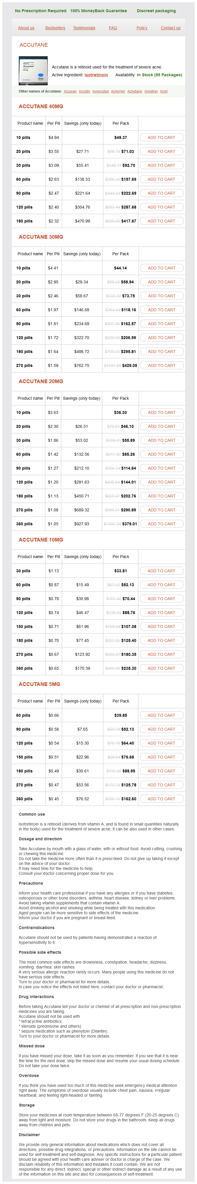Accutane packs: 10 pills, 20 pills, 30 pills, 60 pills, 90 pills, 120 pills, 180 pills, 270 pills, 360 pills, 150 pills