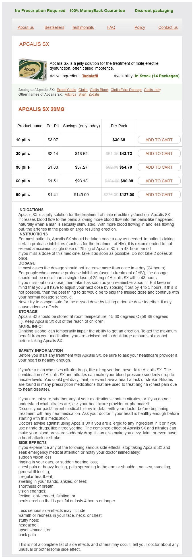 Tags: purchase apcalis sx 20 mg without prescription, apcalis sx 20 mg order online, cheap apcalis sx 20 mg online, 20 mg apcalis sx purchase fast delivery