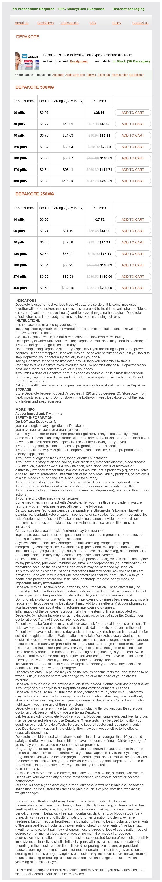 Depakote packs: 30 pills, 60 pills, 90 pills, 120 pills, 180 pills, 270 pills, 360 pills
