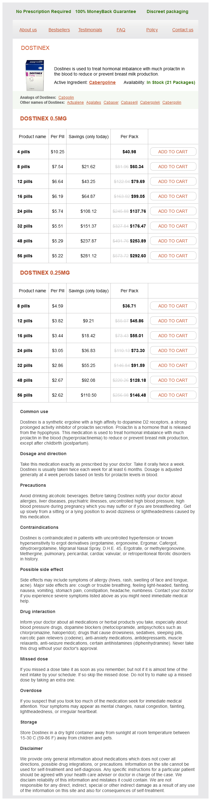 Dostinex dosages: 0.25 mg, 0.5 mg