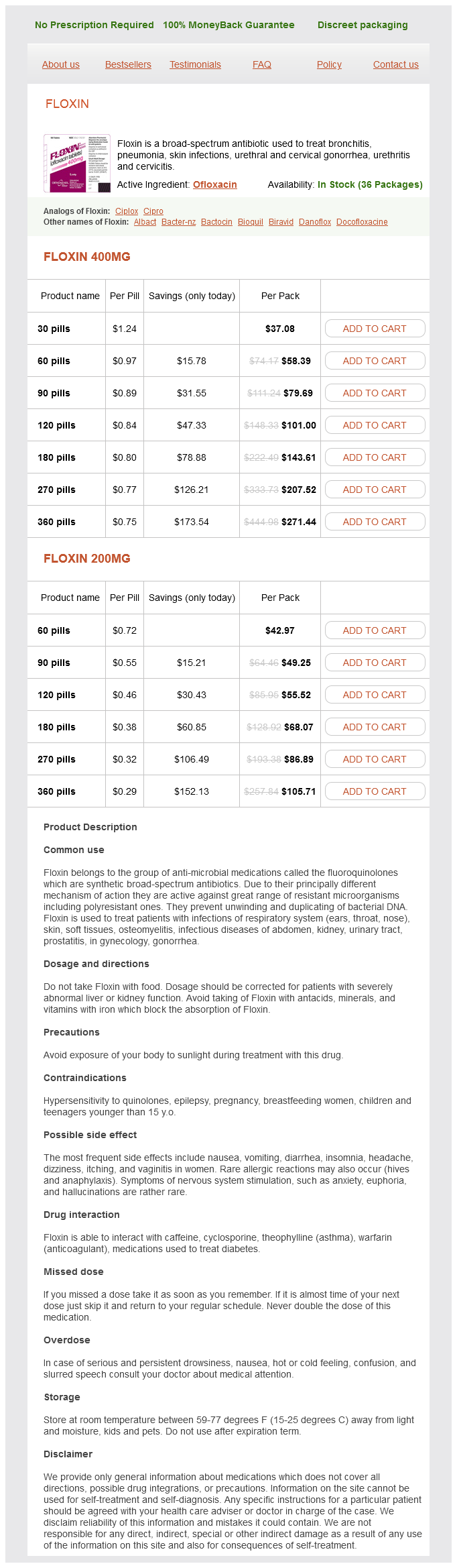 Floxin packs: 30 pills, 60 pills, 90 pills, 120 pills, 180 pills, 270 pills, 360 pills
