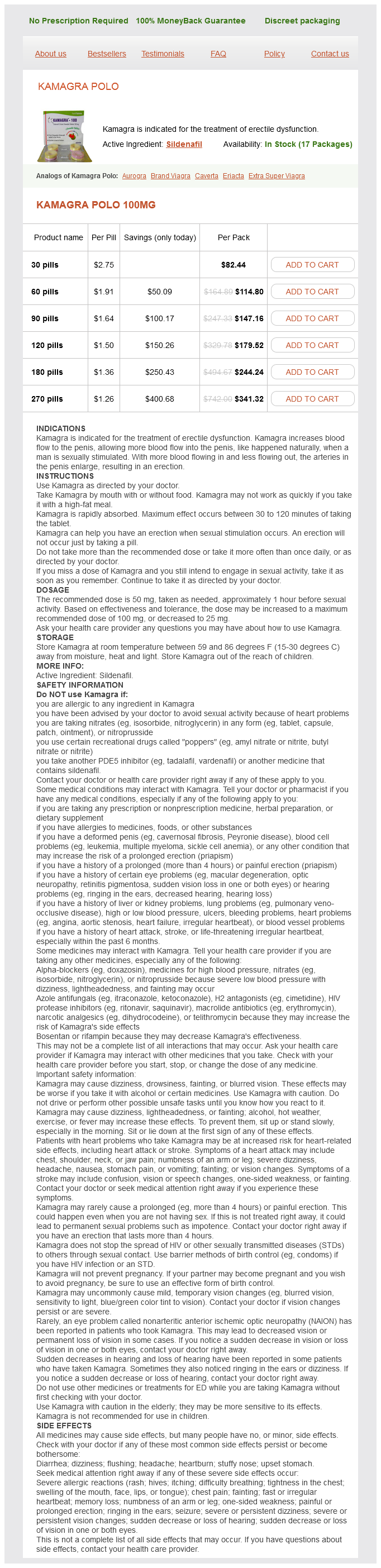 In addition impotence caused by anxiety purchase kamagra polo 100 mg without prescription, some authors have hypothesized and demonstrated that results obtained can be significantly influenced by the blood sample site chosen since diffusion of thyroid hormones and Tg from the thyroid gland may occur at cardiac levels postmortem erectile dysfunction protocol jason discount kamagra polo 100 mg without prescription. Yet again impotence libido kamagra polo 100 mg purchase on line, some authors have recommended the use of femoral vein blood samples concerning postmortem 146 Asphyxiation erectile dysfunction pills side effects buy cheap kamagra polo 100 mg on-line, Suffocation erectile dysfunction medication risks order cheapest kamagra polo and kamagra polo, and Neck Pressure Deaths 19. Thyroid storm induced by trauma due to spear fishing-gun trident impaction in the neck. Postmortem measurements of thyroid hormones in blood and vitreous humor combined with histology. Unreliability of the use of thyroglobulin concentration in postmortem blood samples in forensic diagnosis. The C cells (parafollicular cells) of the thyroid gland and medullary thyroid carcinoma. Lethal pulmonary thromboembolism associated with decreased thyroid hormone levels. Evaluation of postmortem serum and cerebrospinal fluid levels of thyroid-stimulating hormone with special regard to fatal hypothermia. Detection of thyroglobulin in blood stains as an aid in the diagnosis of mechanical asphyxia. Plasma thyroglobulin as an indicator of mechanical asphyxia-comparison of plasma thyroglobulin levels by radioimmunoassay and the results of precipitation-electrophoresis. Concentration of thyroglobulin, thyroxine and triiodothyronine in 3 different causes of death. Circulating thyroid hormone changes in acute trauma: prognostic implications for clinical outcome. Transport of thyroid hormones via the choroid plexus into the brain: the roles of transthyretin and thyroid hormone transmembrane transporters. The analysis of hormones and enzymes extracted from endocrine glands of the neck region in deaths due to hanging. How the reference values for serum parathyroid hormone concentration are (or should be) established Enzyme-linked immunoabsorbent assay for plasma thyroglobulin following compression of the neck. Enzyme-linked immunosorbent assay for determination of plasma thyroglobulin and its application to post-mortem diagnosis of mechanical asphyxia. Thyroid test abnormalities in traumatic brain injury: Correlation with neurologic impairment and sympathetic nervous system activation. Demonstration of thyroglobulin in the heart blood in fatal cases of strangulation. Demonstration of thyroglobulin in the heart blood in fatal cases of strangulation and cut-throat. This means that the toxicology will often have to be taken into account when different alternatives for the cause(s) and manner of death are considered. Since many forms of asphyxia are not incompatible with survival but facilitated by various factors, it is important for the forensic pathologist to review all findings before making the diagnosis. Whereas the toxicological results in complete hangings, or in cases with severe chest compression with unambiguous findings and circumstances, most often do not make any difference to the investigator, the alcohol and drug levels will have to be carefully considered in most other cases of fatal asphyxia. Toxicology in accidental asphyxiations Bolus deaths are regularly encountered by forensic pathologists. The victims are usually either chronic alcoholics or elderly with dementia, or patients with swallowing problems due to neurological disease. In the case of alcoholics, the typical finding is a large piece of food, voraciously swallowed under the influence of alcohol, and sometimes the blood alcohol level is very high. In a study of 78 non-hospitalized persons choking on a bolus of food, one-third were under the influence of alcohol [25]. Although the mechanism underlying bolus death is still not completely elucidated, a vasovagal reflex with cardioinhibitory signalling is one of the most likely alternatives. The normal counterbalance of this overactivation of the parasympathetic system may then fail at significant blood alcohol levels. Due to a reduced muscle strength, subjects severely inebriated by alcohol will also have problems in efficient coughing. Several of the drugs mentioned below as possible facilitating factors in positional asphyxia may also be considered as contributing to a fatal outcome in bolus emergencies. Aspiration, particularly of gastric contents, is a very common finding at autopsy, but its significance for the cause of death is highly variable. Pathologists may overestimate the importance of an impressive aspiration, where the airways actually might not be completely blocked, whereas significant obstruction of the smaller bronchi may go undetected if the examination of the lungs is not performed accurately. Aspiration should be considered as the main or contributory cause of death only when the small bronchi all the way to the finest branches in the lung parenchyma on both sides are blocked by chyme, blood or other material [18]. Even so, agonal aspiration is very common and may in most instances be just an incidental finding. Acute pulmonary oedema and spots with discolouration on the cut surface of the lungs may be signs supporting the notion that the aspiration was vital and significant. In the latter case, microscopic examination may reveal evidence of inflammatory response with accumulation of neutrophils, suggesting that some time has elapsed between the aspiration and death. If the person was under the influence of alcohol and drugs at the time of the aspiration, then the levels might have dropped until death ensued. On the other hand, blood drug levels may increase due to postmortem redistribution if the inhaled vomits contain high amounts of alcohol or drugs. Hence, aspirates containing drugs ma