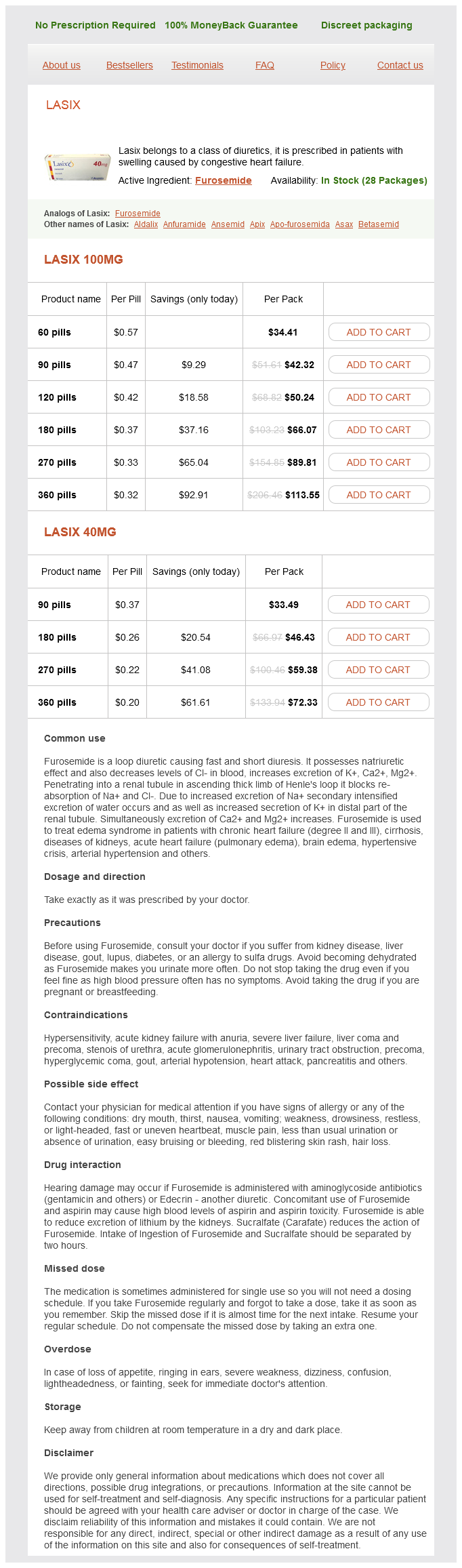 Lasix packs: 60 pills, 90 pills, 120 pills, 180 pills, 270 pills, 360 pills
