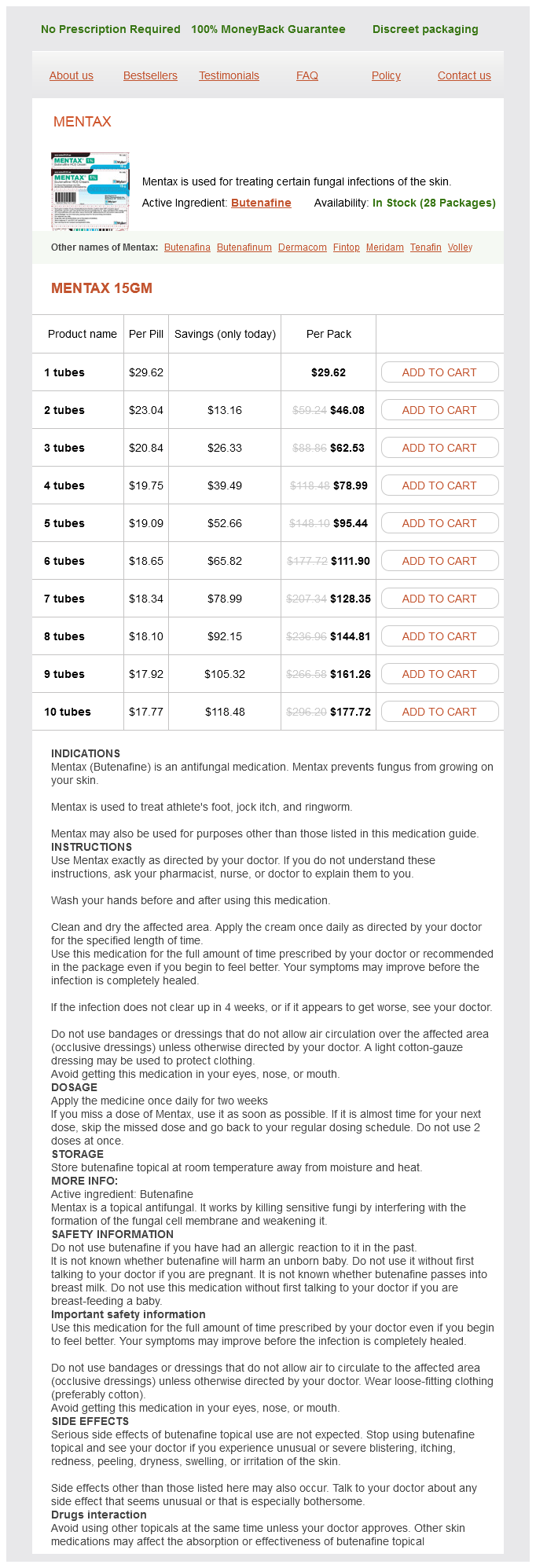 Mentax packs: 1 tubes, 2 tubes, 3 tubes, 4 tubes, 5 tubes, 6 tubes, 7 tubes, 8 tubes, 9 tubes, 10 tubes