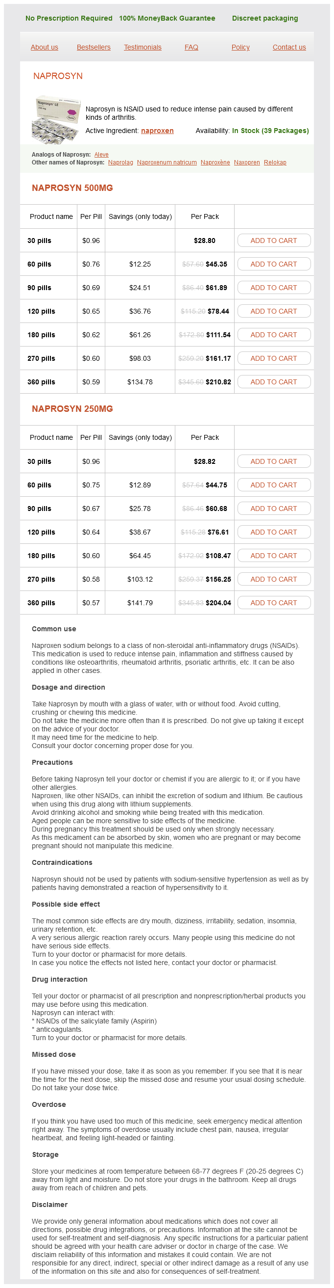 Naprosyn packs: 30 pills, 60 pills, 90 pills, 120 pills, 180 pills, 270 pills, 360 pills