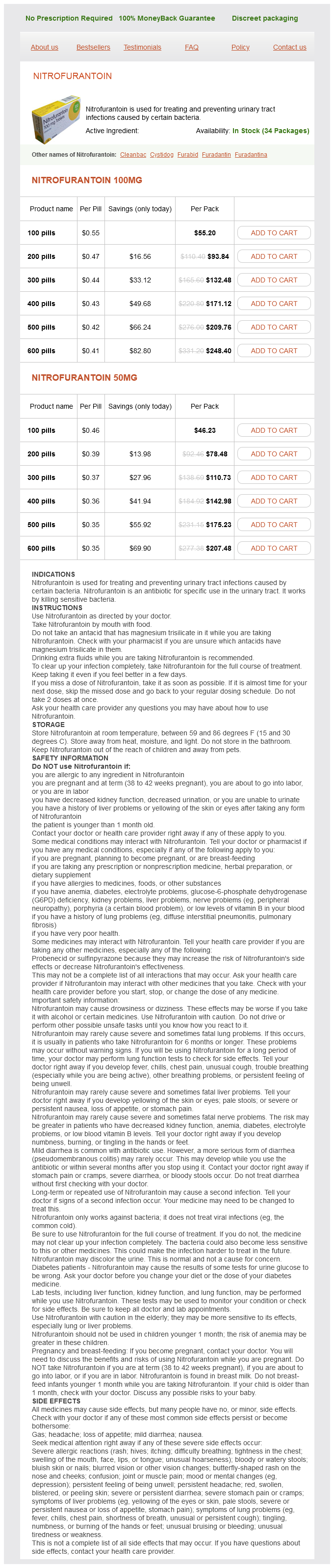 Nitrofurantoin packs: 100 pills, 200 pills, 300 pills, 400 pills, 500 pills, 600 pills