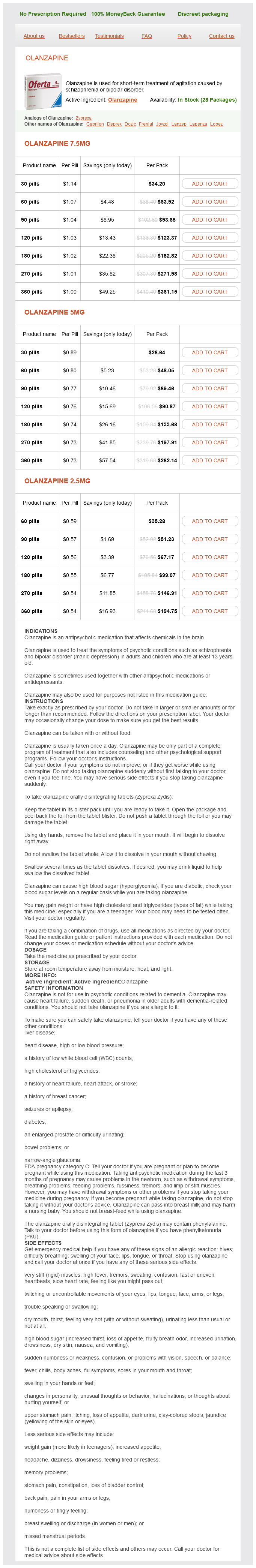 Olanzapine packs: 30 pills, 60 pills, 90 pills, 120 pills, 180 pills, 270 pills, 360 pills