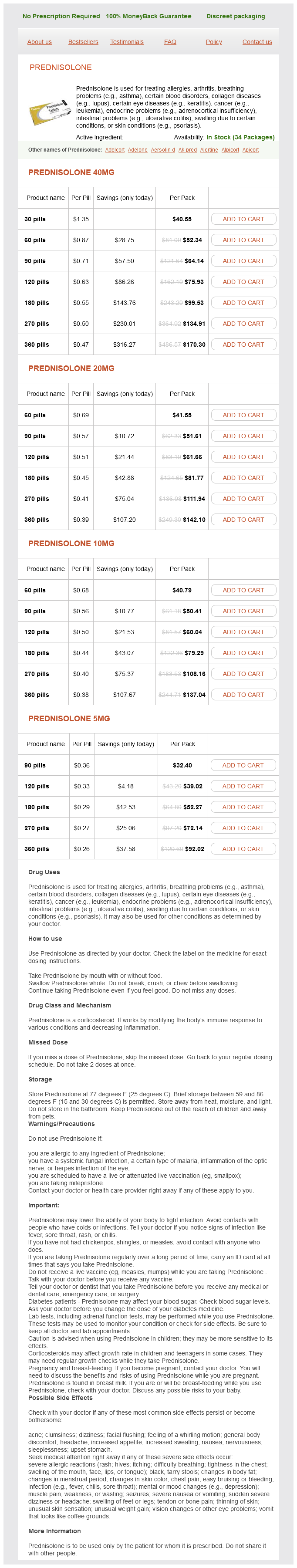 Prednisolone packs: 30 pills, 60 pills, 90 pills, 120 pills, 180 pills, 270 pills, 360 pills