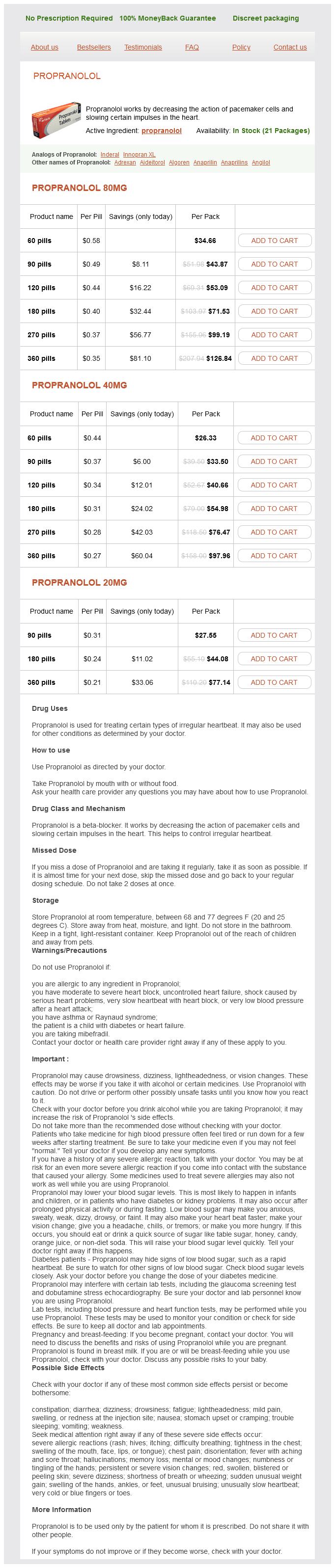 Propranolol packs: 60 pills, 90 pills, 120 pills, 180 pills, 270 pills, 360 pills