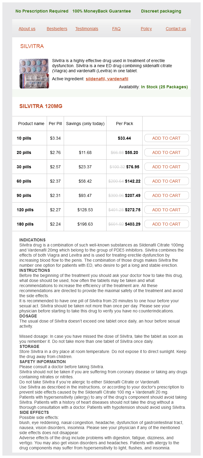 Silvitra dosages: 120 mg