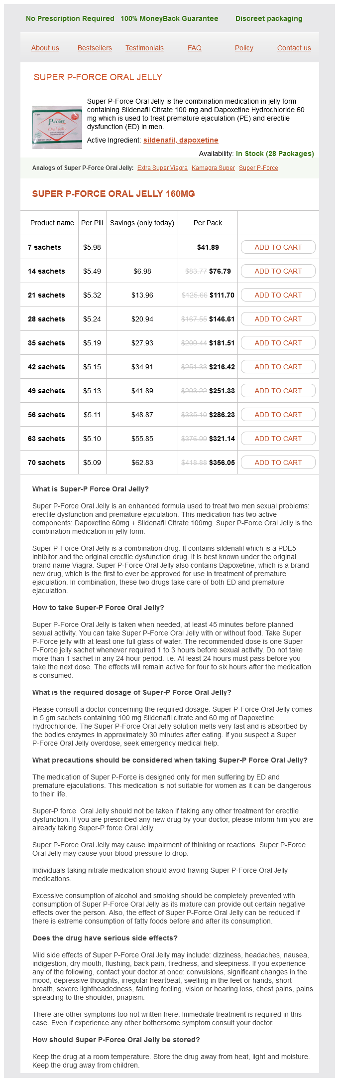 Super P-Force Oral Jelly packs: 7 sachets, 14 sachets, 21 sachets, 28 sachets, 35 sachets, 42 sachets, 49 sachets, 56 sachets, 63 sachets, 70 sachets