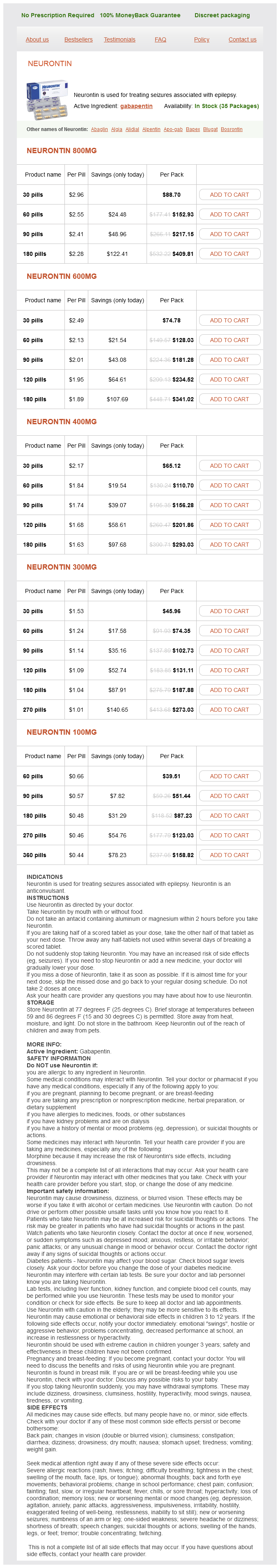 Proximal muscle weakness of the lower extremities symptoms lupus purchase gabapentin 100 mg on-line, autonomic dysfunction (dry mouth medicine vial caps best purchase for gabapentin, constipation medicine overdose purchase gabapentin 800 mg without prescription, pupillary constriction medicine urinary tract infection purchase gabapentin now, sweating) 3 medications that cannot be crushed purchase gabapentin mastercard. Vesicles and bullae on trunk and extremities, ocular lesions causing pain and discharge. Pruritic vesicles and crusts on elbows, knees, and buttocks (associated with celiac disease). These cells are unresponsive to normal cell regulation and continue to divide and grow beyond the normal needs of the organism. Dysplasia: Abnormal growth with loss of cellular orientation, shape, and size compared with normal tissue maturation. Anaplasia: Abnormal cells that are undifferentiated and resemble primitive cells of the original tissue. Epithelial tissues are derived from either the embryological ectoderm or endoderm. Mesenchymal tissues derived from embryological mesoderm include blood cells, vessels, smooth muscle, skeletal muscle, bone, and fat. Tumors consisting of cells derived from all three germ layer are called teratomas. Nomenclature n Prefix: the prefix of the term used for a neoplasm depends on the tissue type, as seen in Table 7-1. Angiosarcoma Leiomyosarcoma Rhabdomyosarcoma Osteosarcoma Liposarcoma Immature teratoma Suffix, malignant neoplasm: Malignant neoplasms of epithelial origin end in -carcinoma, whereas those of mesenchymal origin end in -sarcoma. Exception: Few malignant neoplasms have names that end in -oma (eg, melanoma, mesothelioma, immature teratoma, lymphoma). Neoplastic Progression Cancerous cells pass through several stages as the disease progresses. Epithelial cell layer Basement membrane · Normal cells with basal apical differentiation Normal · Cells have increased in numberhyperplasia · Abnormal proliferation of cells with loss of size, shape, and orientationdysplasia Hyperplasia Carcinoma in situ · Neoplastic cells have not invaded basement membrane · High nuclear-to-cytoplasmic ratio and clumped chromatin · Neoplastic cells encompass entire thickness Carcinoma in situ/ preinvasive · Cells have invaded basement membrane using collagenases and hydrolases · Can metastasize if they reach a blood or lymphatic vessel Invasive carcinoma Metastasisspread to distant organ · Must survive immune attack · "Seed and soil" theory of metastasis · Seed = tumor embolus · Soil = target organliver, lungs, bone, brain. Tumor grade and Stage grade Classification system that describes the degree of differentiation of tumor cells based on histologic characteristics. Based on the site and size of the primary lesion, spread to regional lymph nodes, and the presence or absence of metastases. Characteristics of Neoplastic Cells Benign and malignant cells have features that distinguish them from each other, as seen in Table 7-2. Pressure effects on normal organs or systems (can also occur through infiltration). Obstruction: n Obstructed bronchus pneumonia n Obstructed biliary tree jaundice n Obstructed intestines constipation, strangulation n Obstructed venous or lymphatic drainage edema, superior vena cava syndrome Paraneoplastic effects Various signaling molecules may be secreted by tumors without regulation, leading to systemic effects, as seen in Table 7-3. How they lead to cancer: Mutations or translocations lead to activation/ overexpression of these genes, and growth continues in an uncontrolled manner through excessive proliferation or inadequate apoptosis. Clear cell adenocarcinoma of the vagina in offspring of mothers given the drug during pregnancy. It is associated with a variety of cancers, including leukemia in those exposed to atomic blasts, thyroid cancers in those who have had previous head and neck radiation, and osteosarcoma in watch-dial workers who are exposed to radium. Tumor immunity Affected cells often display tumor antigens that can stimulate the immune system. These antigens may also be used clinically to confirm the diagnosis, monitor for tumor recurrence, and monitor the response to therapy (Table 7-8). Because these antigens are not expressed by normal tissues or are expressed at relatively low amounts, cytotoxic T lymphocytes and natural killer cells can recognize and destroy the neoplastic cells. Cancer incidence and Death ratesa for all Cancer Sites Combined, by race/ethnicity and Sex, united States, 2006 inCidenCe Male All Races White Black American Indian/Alaska Native Asian/Pacific Islander Hispanic 538. Apoptosis occurs physiologically, but either type of cell death can occur in pathologic situations. Familial adenomatous polyposis coli Multiple endocrine neoplasia Autosomal dominant. Morphology the distinctive features of apoptotic cells allow for easily identification by electron microscopy. Enzymatic digestion and leakage of cellular contents Comparison of apoptosis and necrosis. Typically, the plasma membrane remains intact and prevents the cellular contents (eg, lysosomal enzymes) from damaging adjacent tissue or stimulating an inflammatory response. On histologic section, apoptotic cells appear strongly eosinophilic with dense chromatin, and are generally found in small groups. MeChanisMs of apoptosis Apoptosis occurs when signals activate caspases, which are a family of cysteine proteases. Cross-linking of these death receptors leads to signaling that activates caspase-8. Intrinsic apoptosis is regulated by a balance between proapoptotic cellular molecules Bak, Bax, and Bim, and antiapoptotic molecules Bcl-2 and Bcl-x. Each caspase exists as a zymogen, or inactive proenzyme, and is activated through cleavage by the previous caspase in the cascade. Both the intrinsic (mitochondrionbased) and extrinsic (death receptor) signaling pathways are shown. Necrosis Necrosis is uncontrolled degradation of cells in living tissues f