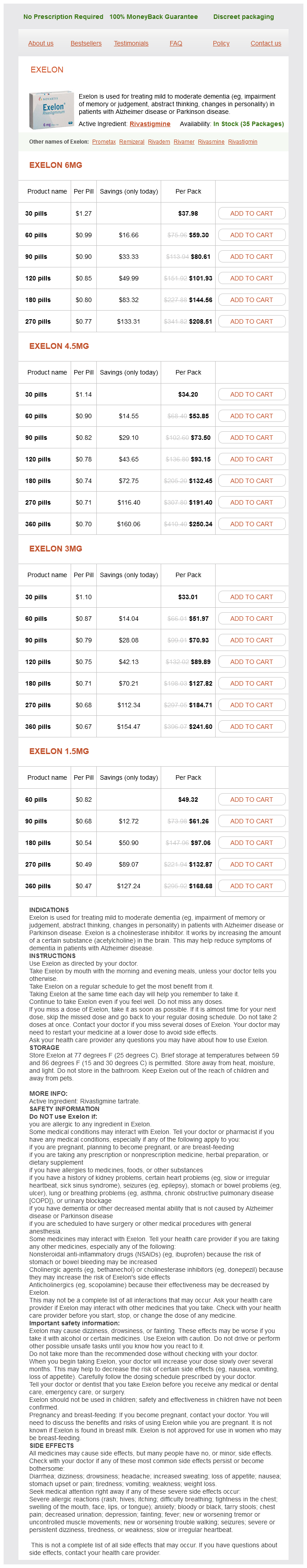 A value of unity indicates total reflection corresponding to zero concentration of the solute in the interstitial fluid symptoms zinc deficiency husky discount rivastigimine 1.5 mg with mastercard. In this context treatment centers for depression 3 mg rivastigimine order amex, it is meaningless to think of a single value for the mean pulmonary capillary pressure symptoms viral meningitis rivastigimine 1.5 mg buy otc. Animal studies using micropuncture techniques obtained subatmospheric pressures of -0 medicine cabinets recessed buy rivastigimine online. The overall osmotic pressure gradient between blood and interstitial fluid is about 1 symptoms 14 dpo purchase rivastigimine pills in toronto. Thus there is a fine balance between forces favouring and 28 Pulmonary Vascular Disease 409 opposing transudation. There is a considerable safety margin in the upper part of the lung where the capillary hydrostatic pressure is lowest. However, in the dependent part of the lung, where the hydrostatic pressure is highest, the safety margin is slender. Like many physiological principles that are several decades old the Starling equation model for capillary fluid movements is an oversimplification. Fluid Dynamics within the Interstitial Space It is now accepted that the interstitial space does not simply act as a passive conduit for fluid transfer to the lymphatics. Regional differences in the properties of these molecules are believed to be responsible for the establishment of a pressure gradient between the septal interstitial space and the juxtaseptal region where lymphatic channels originate. This gradient may promote, and allow some control of, fluid flow from the endothelium to the lymphatics in the normal lung. About 500 ml can be accommodated in the interstitial space and lymphatics of the human lungs with a rise of pressure of only about 0. It is freely permeable to gases, water and hydrophobic substances but virtually impermeable to albumin. Water from the alveolus follows these ion transfers down an osmotic gradient into the interstitial space. Aquaporins are found in human alveolar epithelial cells, suggesting that transcellular water movement may be facilitated by these water channel proteins, but their role in lungs remains unclear and paracellular water movement probably is more important. Active removal of alveolar fluid by alveolar epithelial cells increases within 1 h of the onset of oedema. These mechanisms are important both for minimizing the severity of pulmonary oedema and clearing oedema fluid once the precipitating cause has resolved. Stages of Pulmonary Oedema There is presumably a prodromal stage in which pulmonary lymphatic drainage is increased, but there is no increase in extravascular water. Stage I: Interstitial Pulmonary Oedema In its mildest form, there is an increase in interstitial fluid but without passage of oedema fluid into the alveoli. On the left is shown the development of the cuff of distended lymphatics around the branches of the bronchi and pulmonary arteries. In the middle is the appearance of the alveoli by light microscopy (fixed in inflation). On the right is the appearance of the pulmonary capillaries by electron microscopy. Thus gas exchange is better preserved than might be expected from the overall increase in lung water. Interstitial swelling is, however, not without risks, and swelling on the service side will eventually cause narrowing of the capillary lumen, though this does not occur until pulmonary oedema is advanced. Physical signs are generally minimal in Stage I, except perhaps for mild dyspnoea, particularly with exercise. The centre of the alveoli and most of the alveolar walls remain clear, and gas exchange is not grossly abnormal, but dyspnoea at rest is likely and the characteristic butterfly shadow may be visible on the chest radiograph. Some alveoli are totally flooded whereas others, frequently adjacent, have only the crescentic filling or else no fluid at all in their lumina. It seems that fluid accumulates up to a point at which a critical radius of curvature results in surface tension sharply increasing the transudation pressure gradient. Due to the effect of gravity on pulmonary vascular pressures (page 95), alveolar flooding tends to occur in the dependent parts of the lungs. Rales can be heard during inspiration, and the lung fields show an overall opacity superimposed on the butterfly shadow. Clearly there can be no effective gas exchange in the capillaries of an alveolar septum which is 28 Pulmonary Vascular Disease 411 flooded on both sides, and blood flow through these alveoli constitutes venous admixture or shunt. Blood flow to the oedematous lung regions is slightly reduced by hypoxic pulmonary vasoconstriction (page 98), possibly in conjunction with interstitial swelling causing capillary narrowing (see previous section), but the shunt commonly remains substantial. In less severe pulmonary oedema, there is usually an increased respiratory drive, due partly to hypoxaemia and partly to stimulation of vagal nociceptors (page 58). This may result from a left-to-right cardiac shunt, anaemia or, rarely, as a result of exercise. Discontinuities appear in the capillary endothelium and type I alveolar epithelial cells, whereas the basement membrane often remains intact. Decreased Osmotic Pressure of the Plasma Proteins the Starling equation indicates that the osmotic pressure of the plasma proteins is a crucial factor opposing transudation. Although seldom the primary cause of pulmonary oedema, a reduced plasma albumin concentration is very common in the seriously ill patient, and it must inevitably decrease the microvascular pressure threshold at which transudation commences. Other Causes of Pulmonary Oedema Neurogenic pulmonary oedema may follow head injuries or other cerebral lesions. Evidence for the existence of pulmonary venous sphincters Aetiology of Pulmonary Oedema On the basis of the Starling equation, it is possible t
